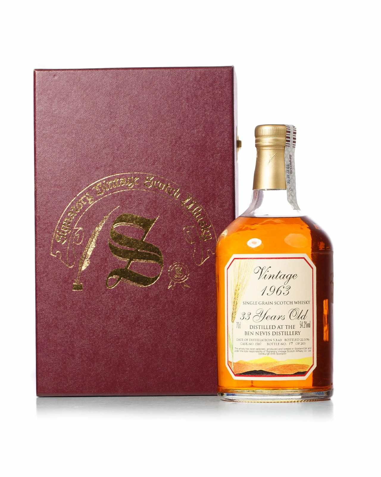 This is a bottle of Ben Nevis 1963 33 Year Old Signatory Vintage Bottled 1996, 70cl, 54.2% ABV.