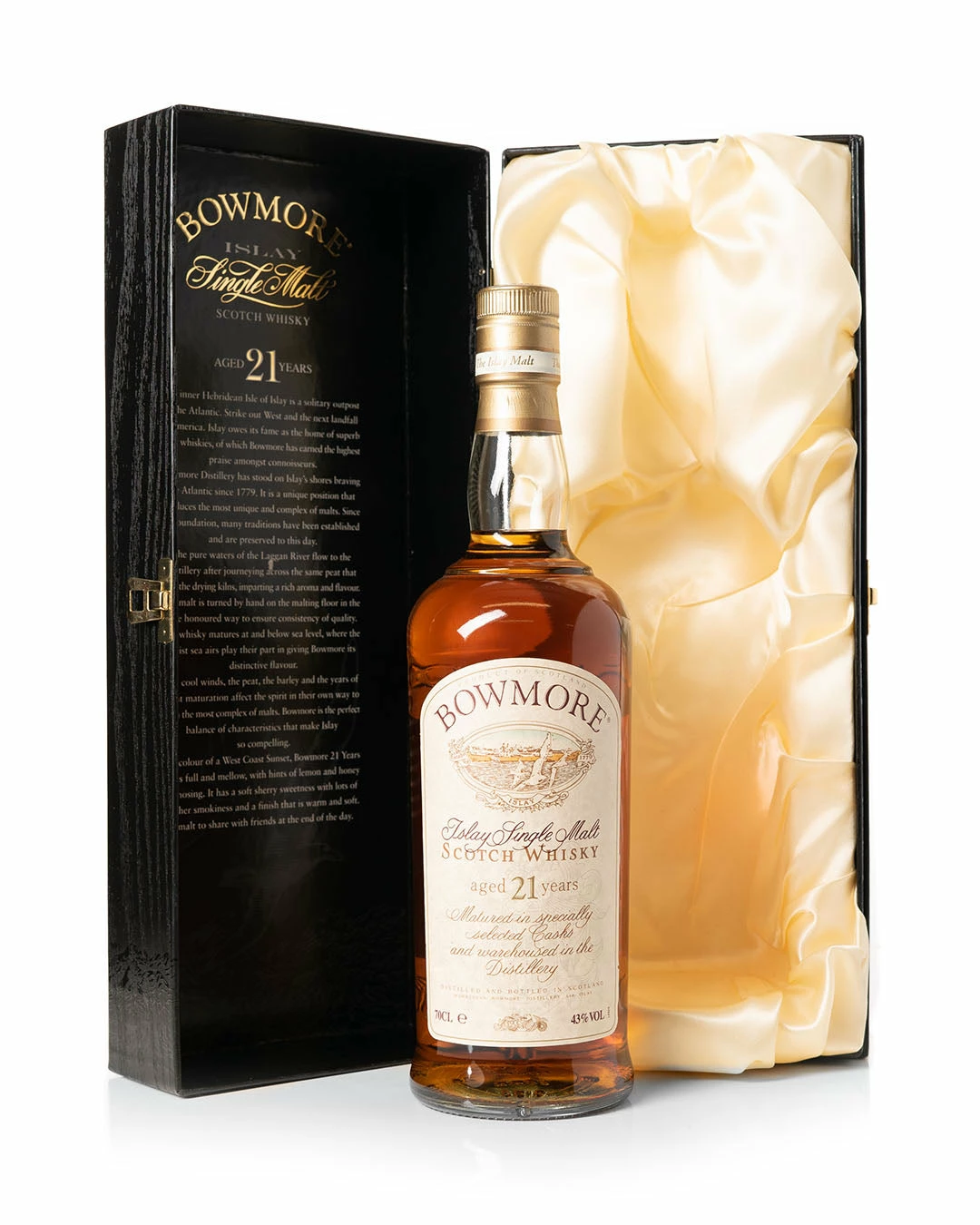 This is a bottle of Bowmore 21 year old, 70cl, 43% abv.
