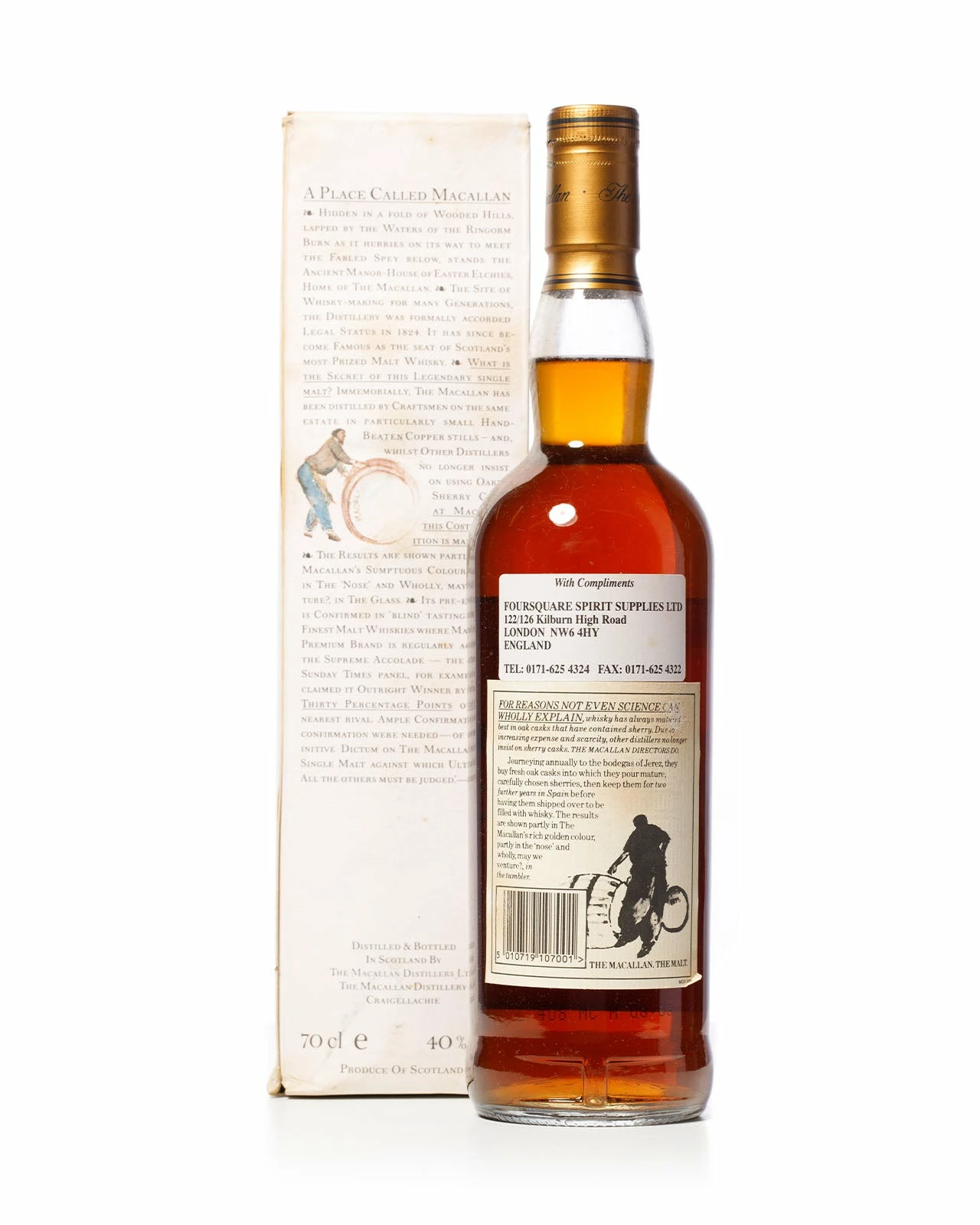 A bottle of Macallan 1980’s 10 year old Sherry cask, 70cl, 40% abv, in original box